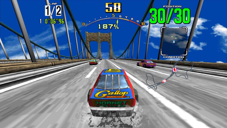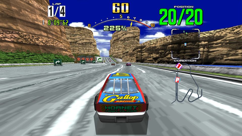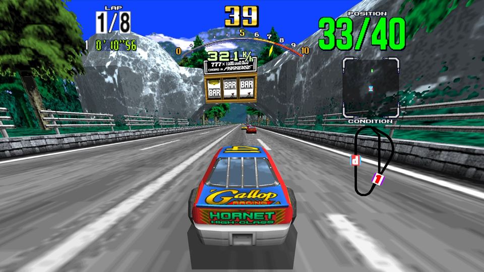 • 当時最先端のグラフィック、高速レースの爽快感、印象的なBGMのすべてが詰まった名作。