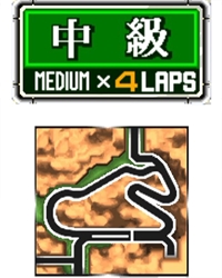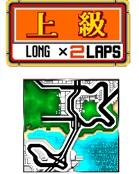 • レイアウトは序盤は登りながらの高速スラロームが主体で、中盤から高低差に加え、バンク有・バンク無の2つのタイトターンが待ち受ける。