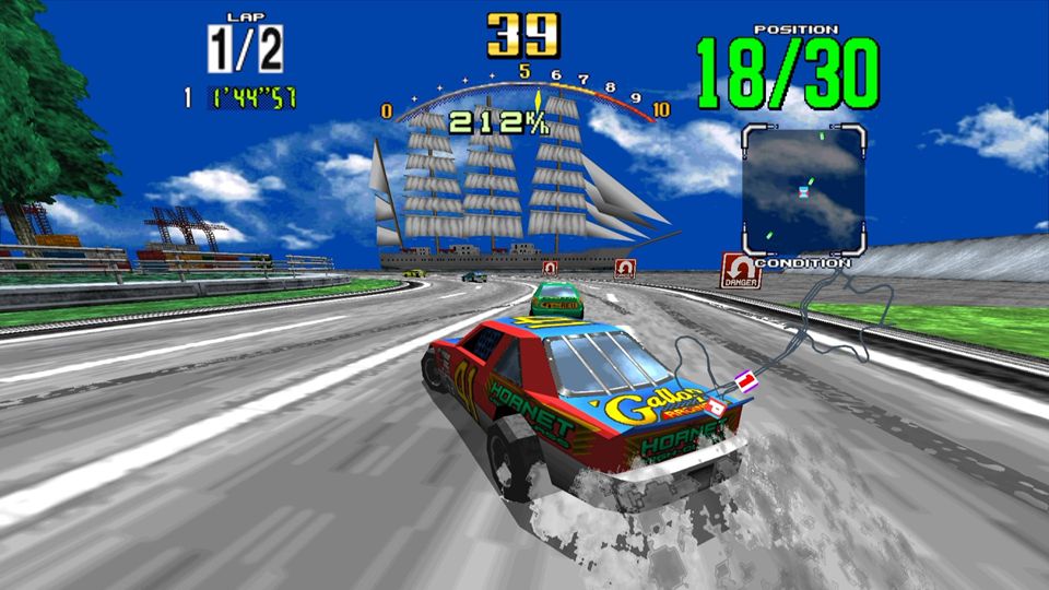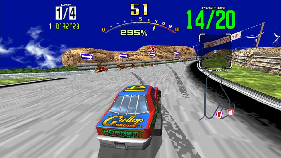 • 全体的にCPU車のレベルが高めなこともあり、これが原因で一般的に「セガ製の1990年代ACレースゲームは難易度が高い」と言われます。