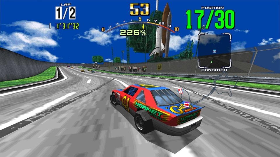 実在の「デイトナ・インターナショナル・スピードウェイ」にインスパイアされた高速オーバルコースを舞台に、 ド派手なBGMと美しい3Dグラフィック、爽快な操作感でプレイヤーを魅了しました。